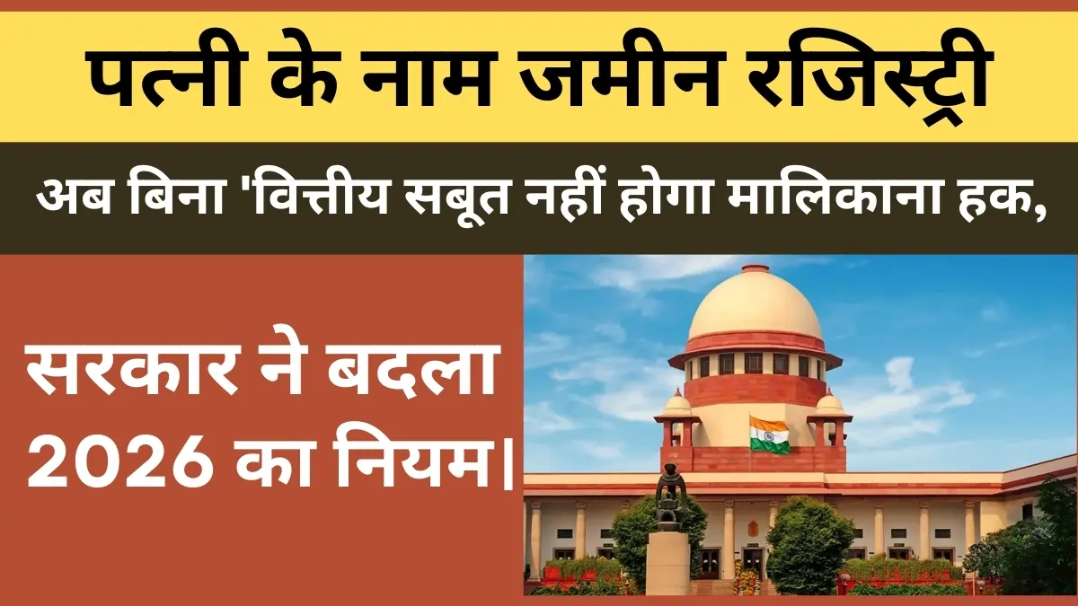 पत्नी के नाम जमीन रजिस्ट्री: अब बिना ‘वित्तीय सबूत’ नहीं होगा मालिकाना हक, सरकार ने बदला 2026 का नियम।
